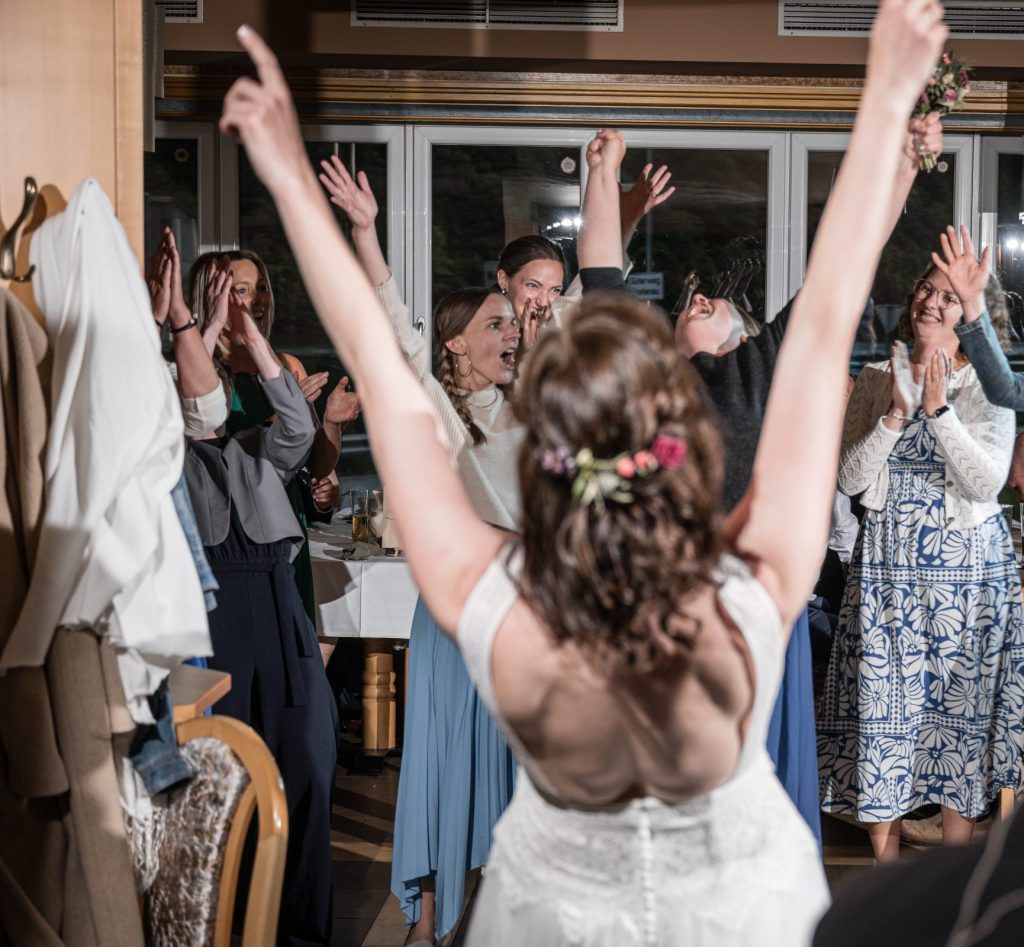 Hochzeitsspiele, Brautstrauß werfen oder der Tortenanschnitt – alles wird im Vorfeld genau besprochen – und garantiert einen reibungslosen Ablauf für Euren Hochzeitstabend!